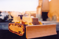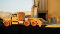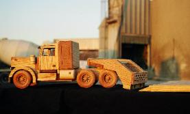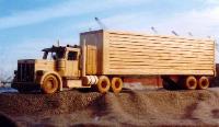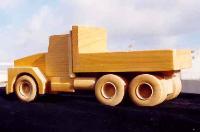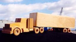 Executive Line and Custom Line Designed and crafted for the experienced driver. The Executive Line represents larger, fine-detailed trucks patterned after the actual rigs and heavy equipment seen on highways, roads and job sites. Constructed from select cuts of oak, maple and walnut, each vehicle has an extensive list of details on both interior and exterior. Featuring walnut grills, CB radio, steering console, dashboard, walnut bucket or bench seats, 2 ¾ maple wheels, mud flaps, wooden engines and working hydraulics on the heavy equipment models (Back Hoe and Bulldozer). Knockabout Toy’s Executive trucks take you out on the road. The Custom Line is personalized for the individual. Past examples built to customer specifics include: Peterbilts with livestock trailers, Caterpillar D9 Dozers, Mack Dump trucks, Kenworths with a van trailers and Farm Tractors. We can also craft any rig combination that you may think of. Please send or email a photograph of your rig or machine and we will discuss how to reproduce it in wood. |