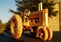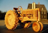 The Green Farm Tractor Constructed of maple, cherry, and walnut hard woods. Details include: clutch, gas and brake pedals, realistic engine components, headlights, walnut seat, walnut radiator, and realistic treads on the rear wheels. Finished with hand rubbed Danish Oil. The detail shown in this tractor is a tribute to the American farming heritage. |