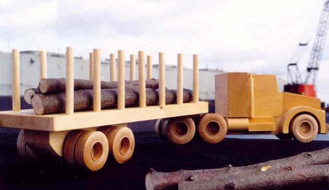 Just like the ones you see on Northern Maine roads. Used to haul all types of cargo, from lumber and pipe to Christmas Trees. Logging Trucks handle it all. Features include: solid wood construction, maple wheels, and a detachable log trailer. The Logging Truck measures 25"L x 5"W x 6-1/2"H. |